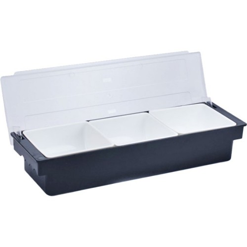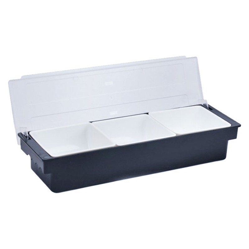 Garnish Tray / Condiment Dispenser with Lid 3 Compartments 500x160x90mm Black & White | Stwalwart DA-JGM102