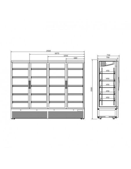 The Koolmax range of KMF2000 high capacity freezers are the perfect addition to any busy retail establishment. The Triple Glass doors incorporates and integrated handle and vertical LED lighting. Hydraulic hinge design with soft closing doors is another quality feature. Not only are these units practical, they are stylish, robust and modern. The ideal unit to showcase all frozen products perfectly. All shelves come with a perspex inlay and epos strips, which makes these cabinets the best choice for frozen produce.