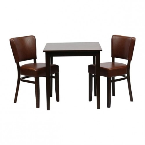 Crafted from solid rubberwood with a rich dark walnut finish, the Pimlico table offers a sturdy and sophisticated centrepiece for smaller dining spaces. It’s paired with two Oregon dining chairs, featuring elegant tapered legs and upholstered in Bison Espresso brown vinyl — soft, stylish, and easy to wipe clean.