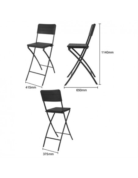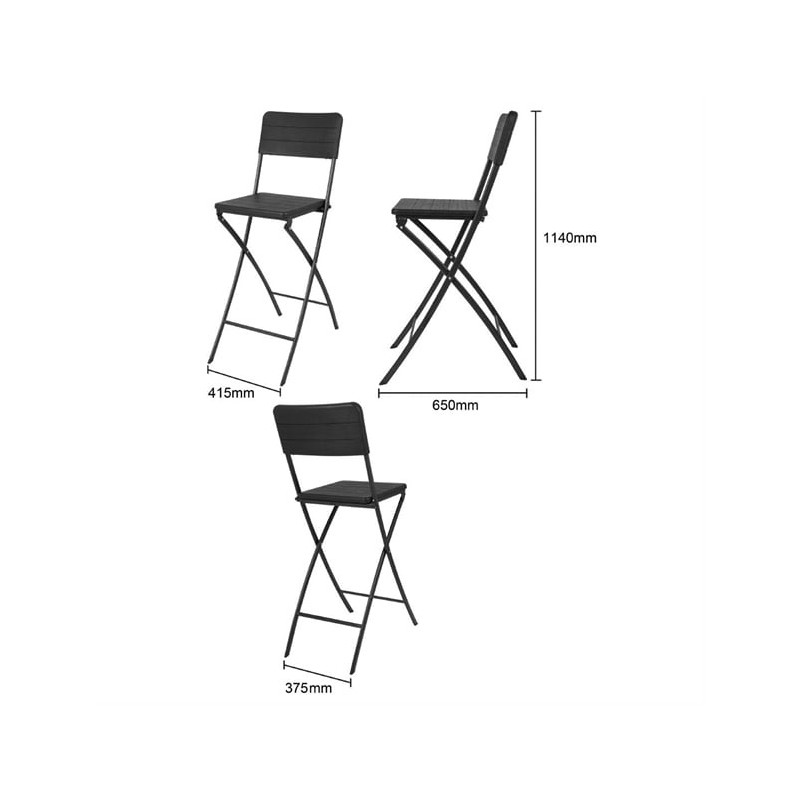 Bolero Folding Bar Chairs Black Wood-Effect (2 Pack)