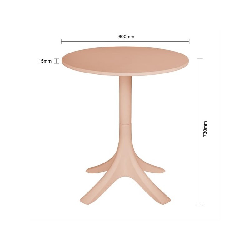 Modern, practical, and effortlessly stylish — the Bolero Mila Round Table in nude pink is the perfect addition to any café, bistro, or casual dining area. With a 600mm tabletop, it comfortably seats four for drinks or serves as a cosy two-person dining table, making it a versatile option for both indoor and outdoor settings.