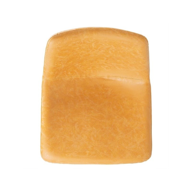 Featuring an ergonomic seat pad and backrest upholstered in camel-coloured polyurethane fabric, it offers excellent comfort and is easy to wipe clean—perfect for busy service environments. The black powder-coated steel base includes a built-in footrest for added support and stability, while the adjustable height ensures versatility across a range of bar and countertop setups.