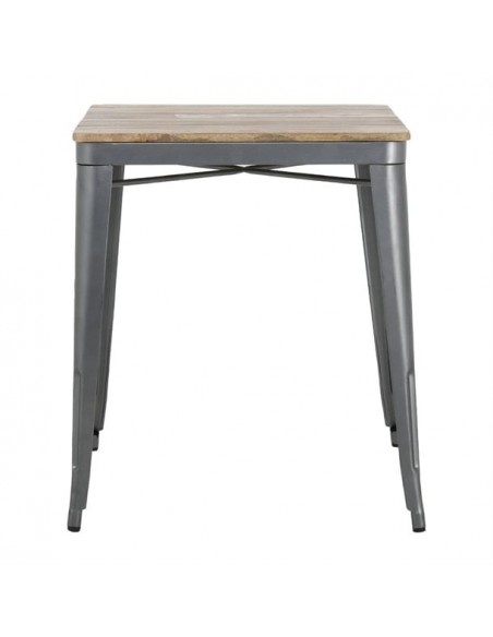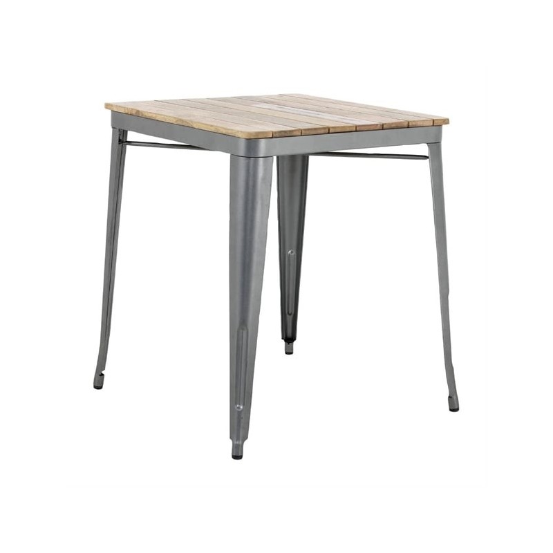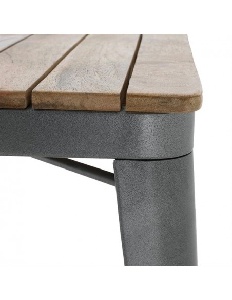 Bolero Bistro Dining Table Slatted Mango Wood Top Gunmetal Frame 650mm
