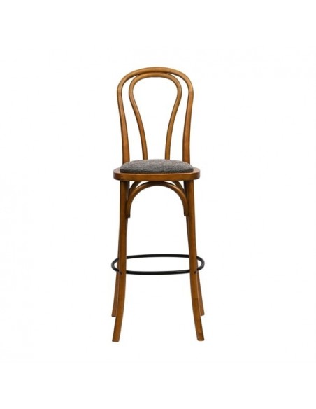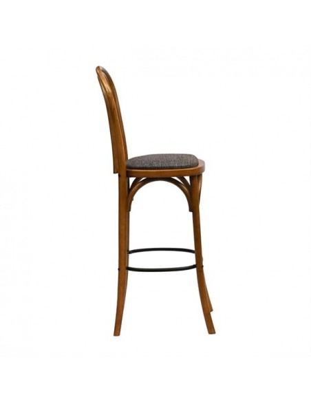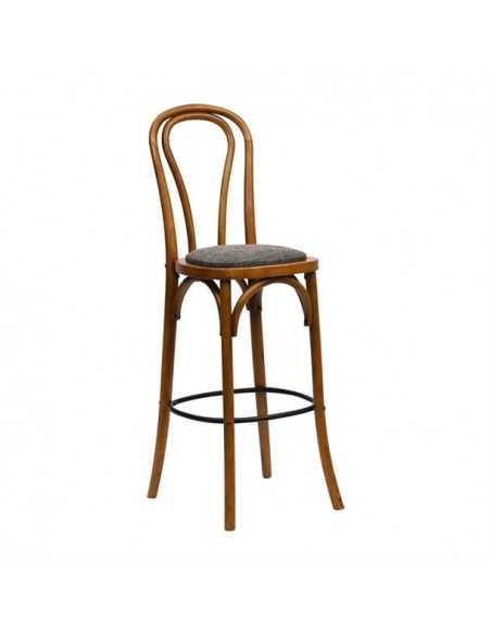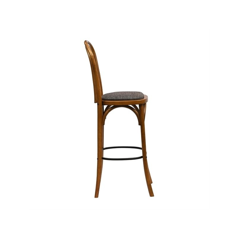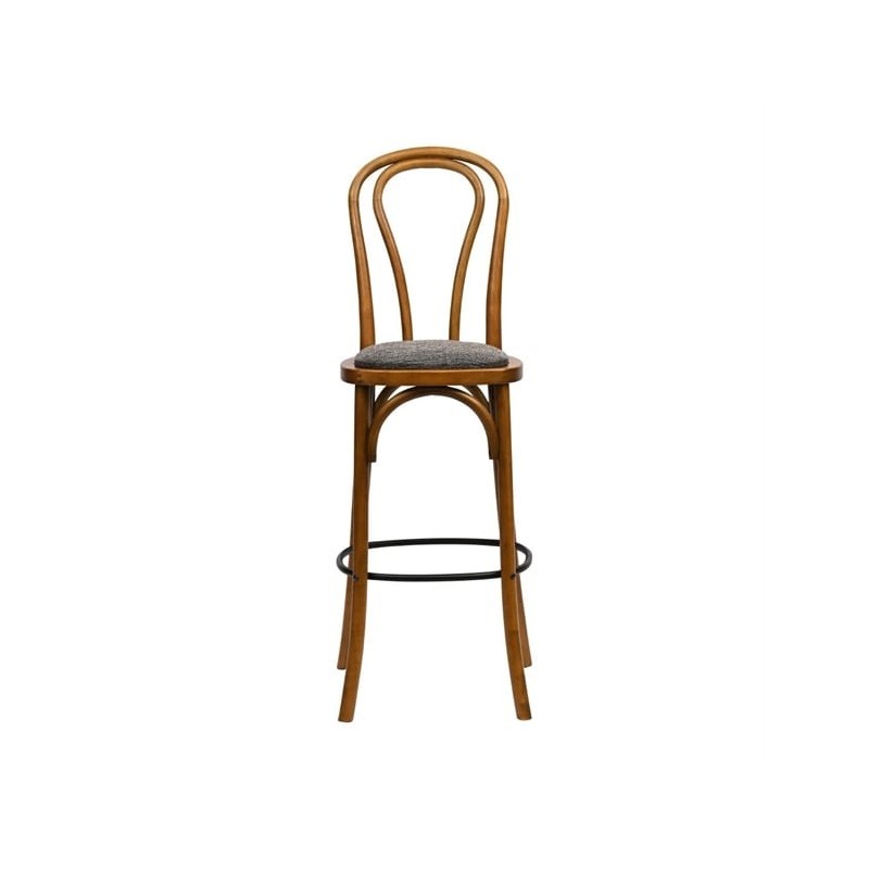 The seat is upholstered in Shetland Smoke fabric, offering a soft grey tone and plush padding for exceptional comfort. Whether placed at a bar or high table, this chair blends aesthetics with function, creating a warm and welcoming experience for your guests.
