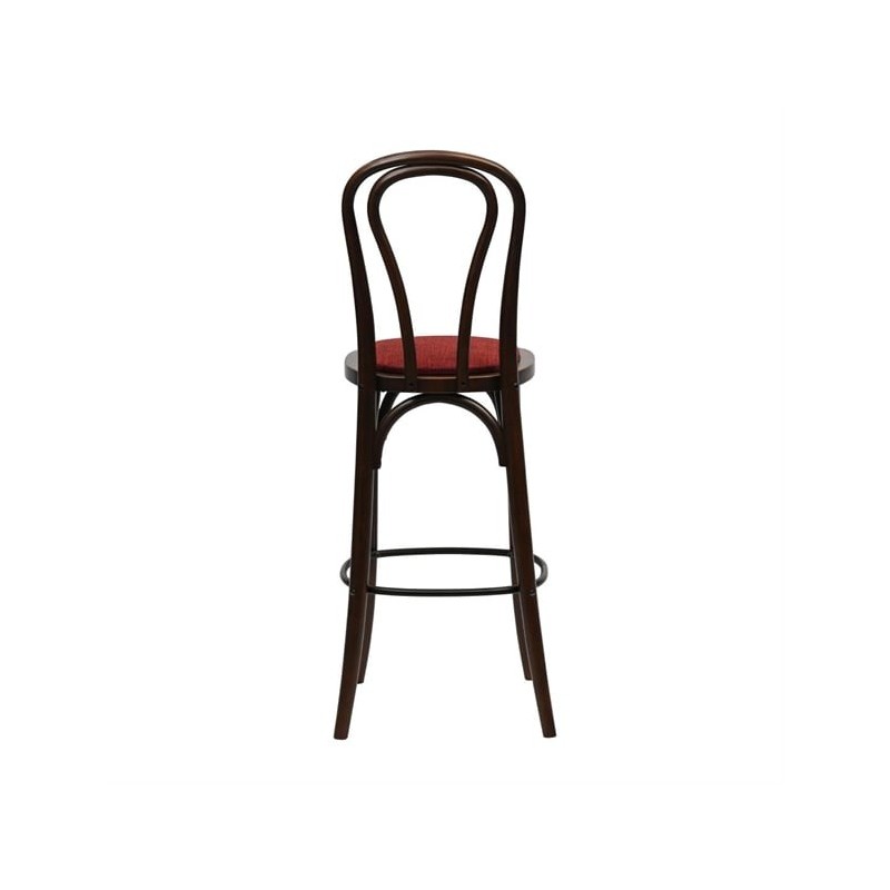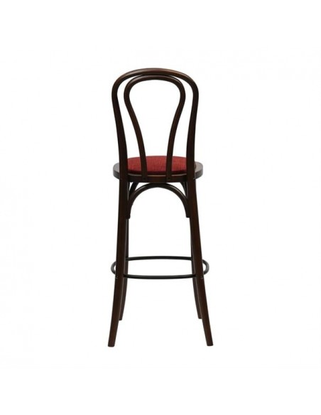 The dark walnut wood finish exudes warmth and sophistication, while the Shetland Scarlett upholstered seat offers a bold, plush surface that invites guests to relax in style. Built from durable rubber wood, this bar chair meets contract standards, ensuring it stands up to the rigours of high-traffic commercial environments.