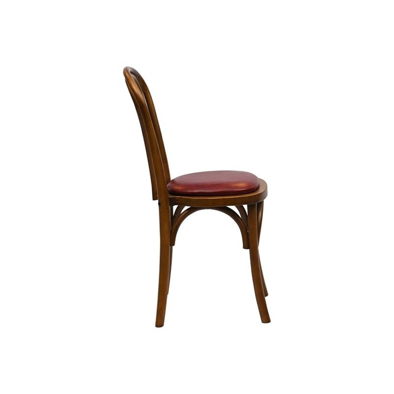 Crafted from durable rubber wood and built to meet contract-grade standards, this bistro-style chair is designed to withstand the demands of busy hospitality environments. Whether in a restaurant, café, or hotel, it enhances a wide range of interior styles with its graceful form and warm tones.