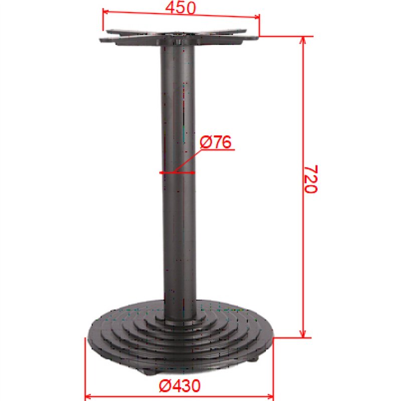 The 450 mm top plate allows for secure attachment of various tabletop sizes, and the standard 720 mm height is perfect for dining configurations. Finished with a sleek black powder coat, this table base combines modern aesthetics with long-lasting durability.