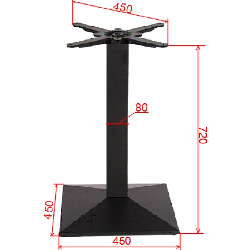 This robust and stylish cast iron table base is designed to meet the demanding needs of commercial dining spaces such as restaurants, cafés, and bars. Its square 450x450 mm base ensures exceptional stability, while the Ø80 mm central column offers reliable structural support. The 450 mm top plate allows for secure attachment of a wide range of tabletops, making it a versatile choice for various dining configurations.