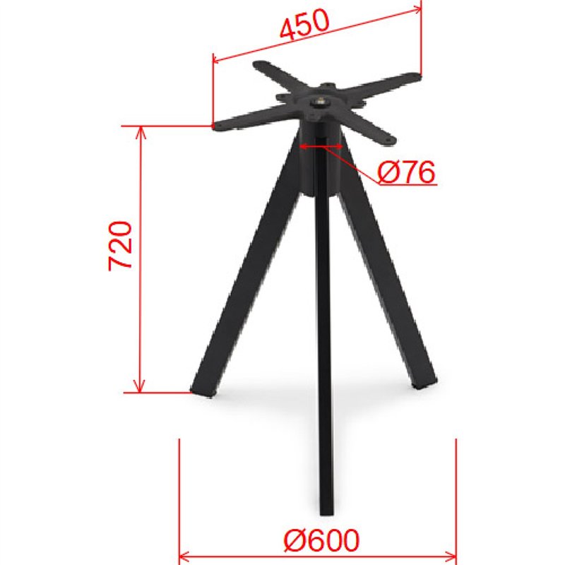 Elevate your dining space with this contemporary tripod-style table base, expertly designed for modern interiors. Crafted from heavy-duty cast iron, it features a sleek three-leg design that offers excellent stability while maintaining an open, minimalist footprint. The wide Ø600 mm base ensures balanced support, and the 76 mm diameter central column provides strong load-bearing capacity. A 450 mm top plate allows secure mounting of various tabletops, making it a versatile choice for cafés, restaurants, and other stylish commercial settings. Finished in a matte black powder coat, this base combines lasting durability with a modern aesthetic.
