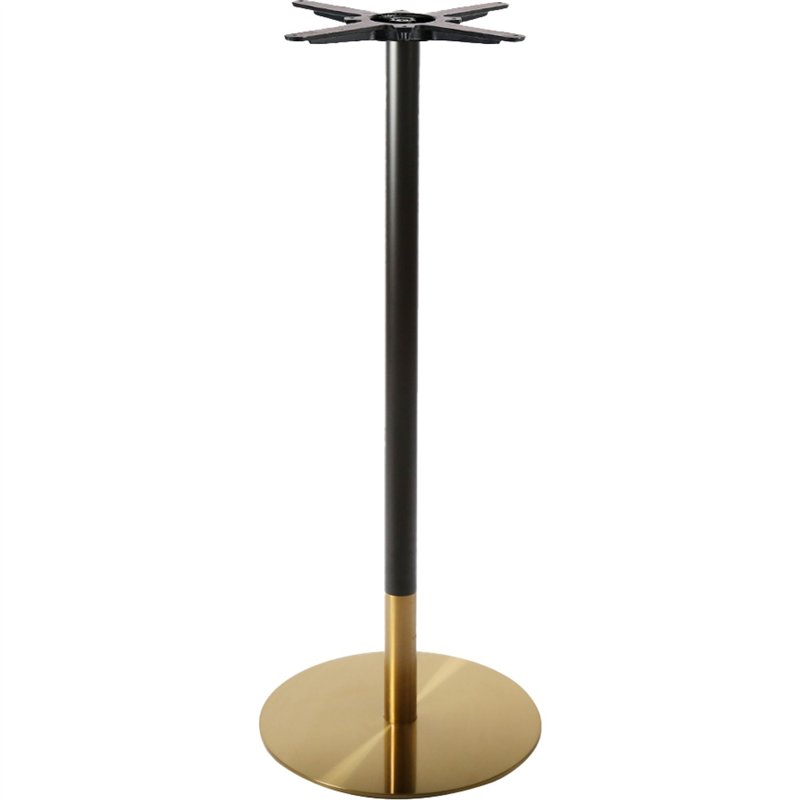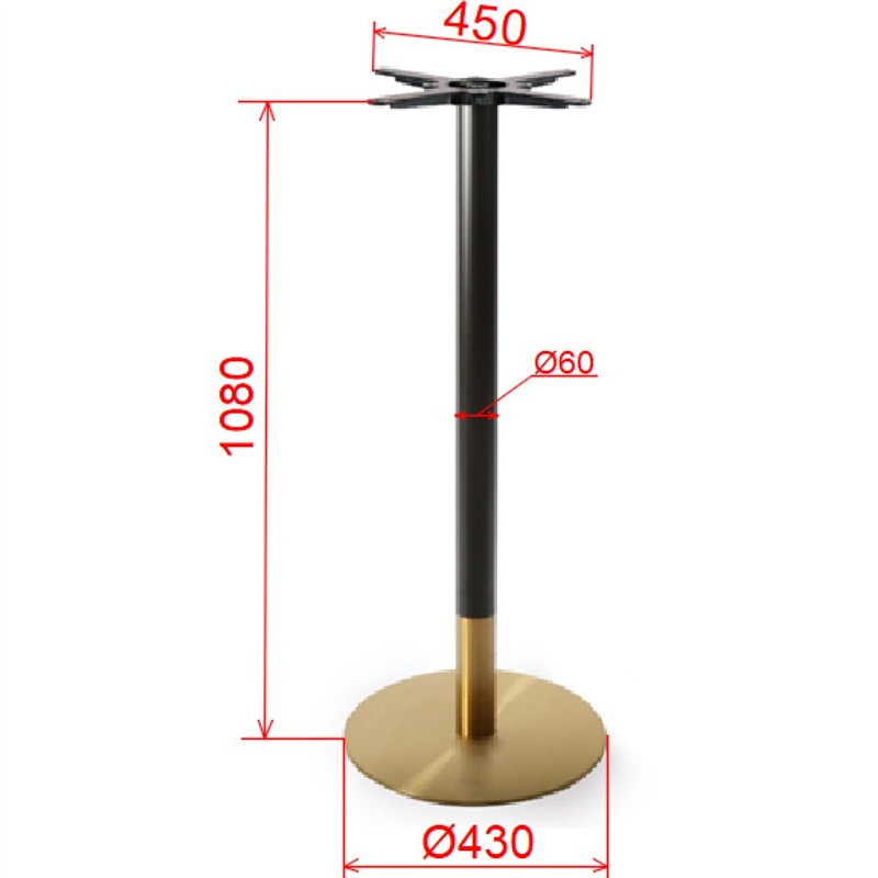 This durable black-gold cast iron table base combines robust strength with stylish design, making it perfect for commercial dining settings such as restaurants, cafés, and bars. The round 430mm base ensures excellent stability, while the substantial Ø118mm central column provides solid structural support. The 450mm top plate allows secure mounting for a variety of tabletops. Standing at a standard height of 1080mm, it’s ideal for bar or high dining setups. Finished in a sleek black-gold powder coat, this base offers a modern, long-lasting aesthetic that enhances any interior.