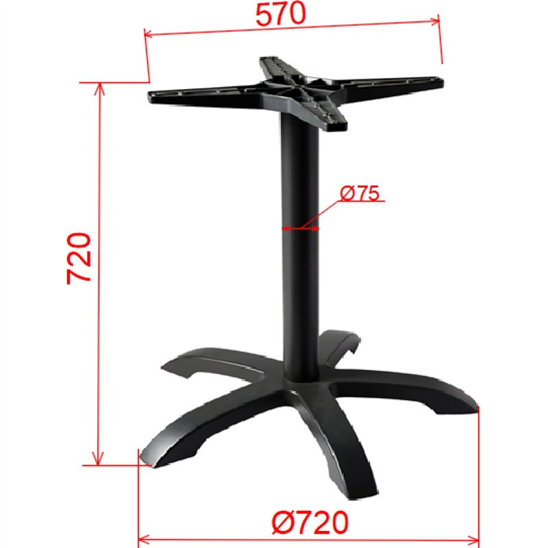 Designed for demanding commercial settings like restaurants, bars, and hotel dining areas, this heavy-duty star-base table stand offers exceptional stability and load-bearing capacity. Its wide Ø720 mm five-leg cast iron base provides excellent balance, while the robust Ø75 mm steel central column ensures durability and long-lasting performance.