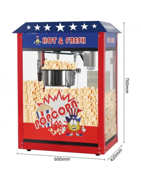 Built for frequent use and reliable operation, this popcorn machine combines classic looks with modern functionality – the ideal solution for anyone looking to serve popcorn in a professional or entertainment setting.