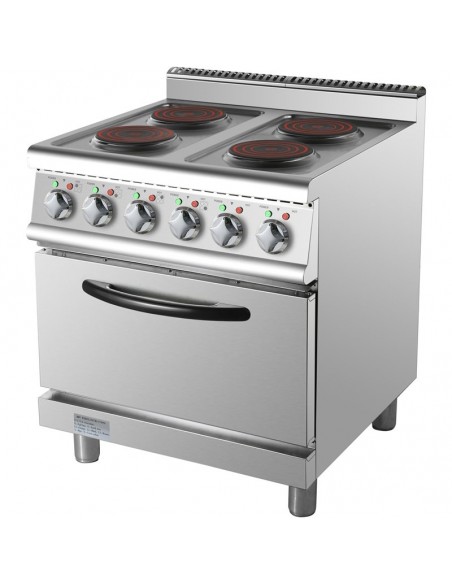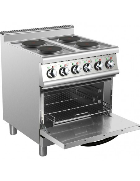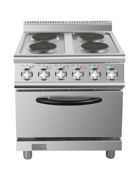 Heavy duty, high quality 4 burner electric cooker with electric oven constructed from stainless steel. This electric range oven has a depth of 700mm to seamlessly fit in with our modular cooking range.