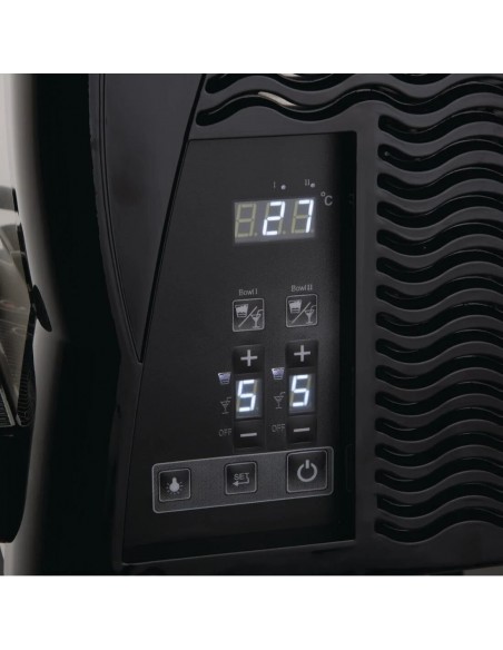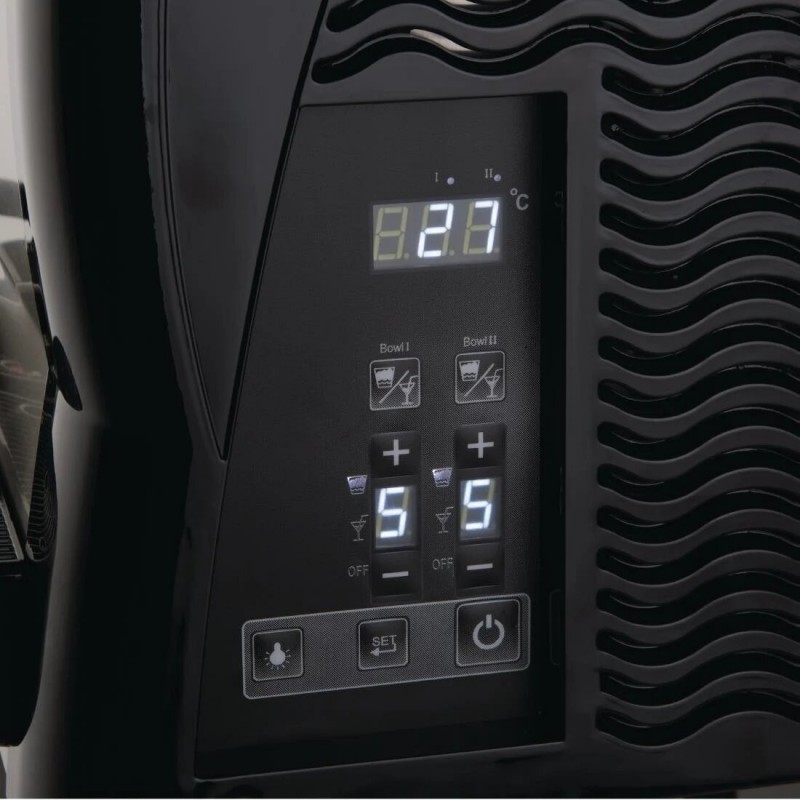Polar DB332 With two high capacity 12 litre tanks, the Polar slush machine is the perfect solution for letting you offer two delicious flavours at once from a single unit. Built with a powerful and effective cooling system, the Polar is able to produce high-margin slushed ice from as little as 40 minutes after activation, making it perfect for events, bars or convenience stores. The digital display, electronic temperature and speed controls all aid in making setup and operation easier, whilst allowing you to customise settings to serve anything from chilled drinks to ice-cold slush. The slush maker features independent controls for each tank, so you can vary the drinks offered to expand your menu. With strong stainless steel and APS plastic construction, the slush machine is highly durable and easy to clean after use too. As well as this, both tanks and dispensing nozzles can be individually removed and thoroughly cleaned - helping to maintain a safe, hygienic service and great-tasting drinks.