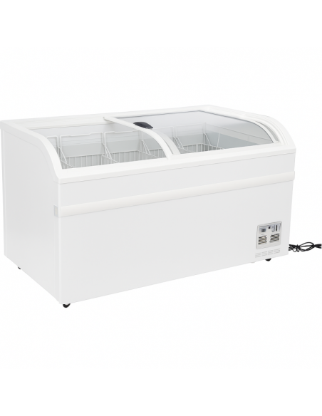Commercial Horizontal Display Freezer with Shelves 550 Litres 2 Glass Doors 1500x850x850mm Ventilated Cooling Automatic Defrost