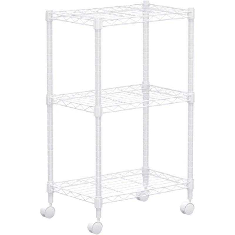 Organize your space with ease using this compact and durable 3-tier utility trolley. Designed with a strong white powder-coated steel frame and open wire shelving, it provides practical storage for kitchens, pantries, utility rooms, or workspaces.