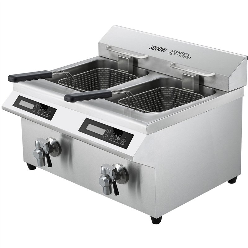 Each 8L tank features a powerful 3500W pure copper induction coil, ensuring rapid heat-up times and stable temperature control. The intuitive touch panel with LED display and manual knob provides effortless operation, while the 60°C–240°C adjustable range and up to 180-minute timer allow versatile cooking for a wide variety of dishes.
