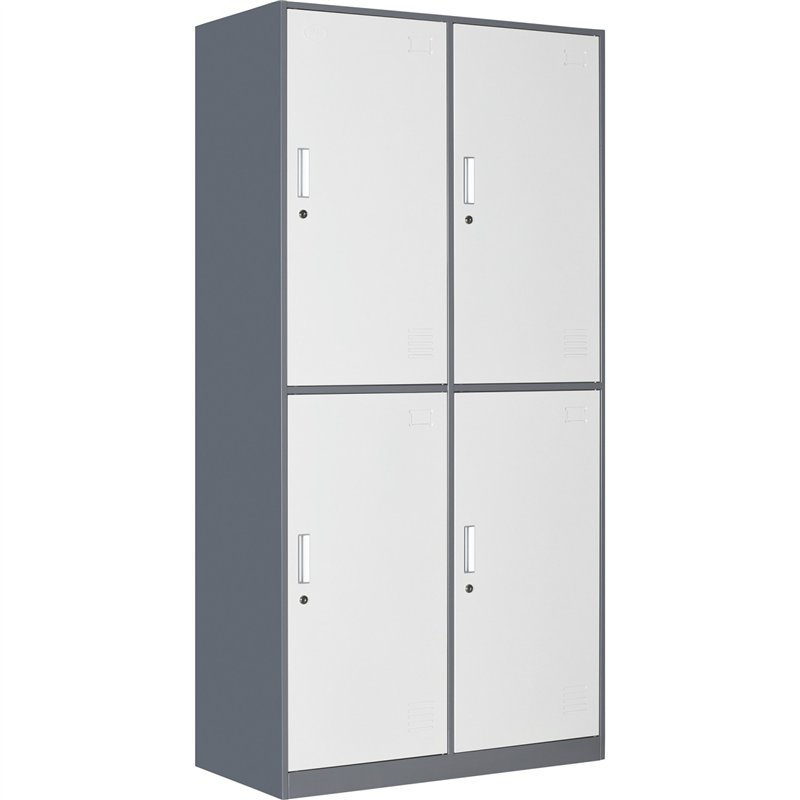 This sleek four-door locker blends modern design with practical functionality. Crafted from durable 0.6mm cold-rolled steel and finished in a smooth gray-white powder coating, it provides lasting strength and a contemporary look. Each compartment features a sturdy hanging rod and an individual mirror, offering convenience, privacy, and organized storage.