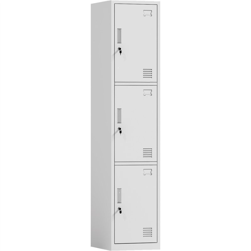 This sleek three-door locker offers a practical and secure storage solution with a modern, minimalist design. Constructed from durable 0.5mm cold-rolled steel and finished in a clean RAL9011 white powder coating, it ensures long-lasting durability and a professional appearance.