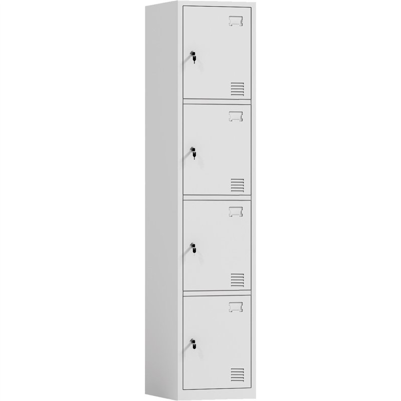 This sleek four-door locker offers secure and practical storage with a modern, minimalist design. Crafted from durable 0.5mm cold-rolled steel and finished in a clean RAL9011 white powder coating, it provides long-lasting durability and a professional appearance.