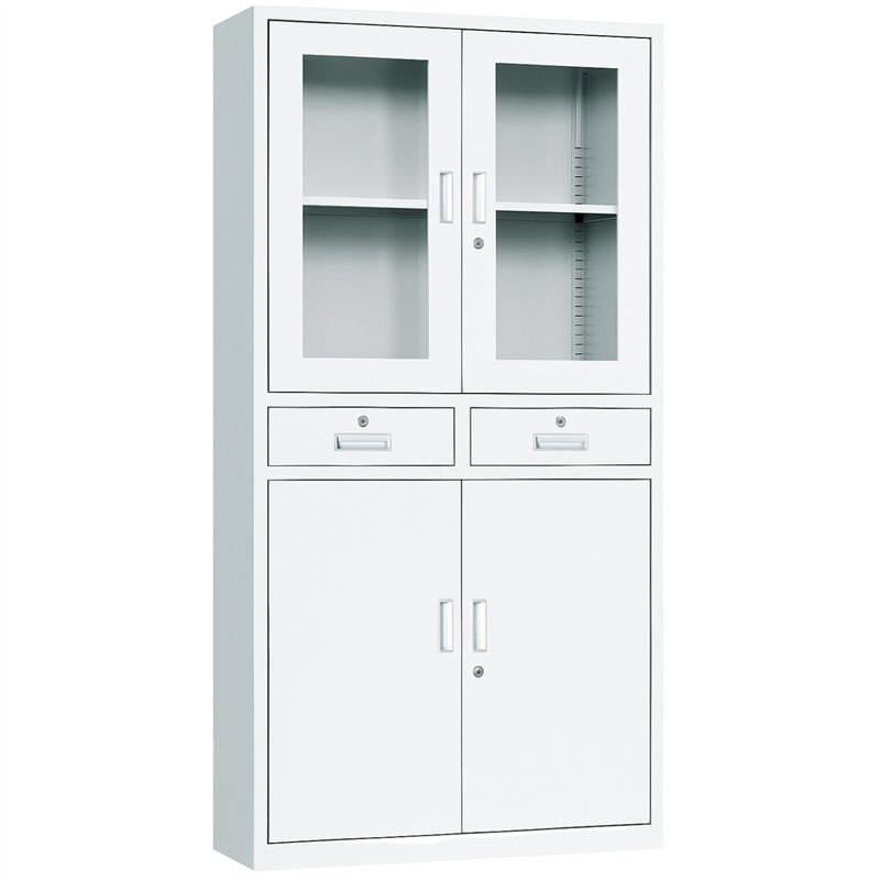 Professional Filing Cabinet with Glass & Metal Doors and 2 Drawers 900x390x1800mm White | Stalwart DA-HDWB24