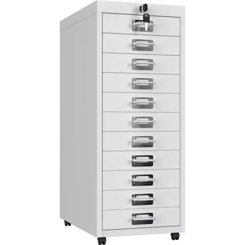 Professional 11-Drawer Lockable Metal Storage Cabinet with Wheels 280x425x710mm White | Stalwart DA-HDKM11LOCKWHITE