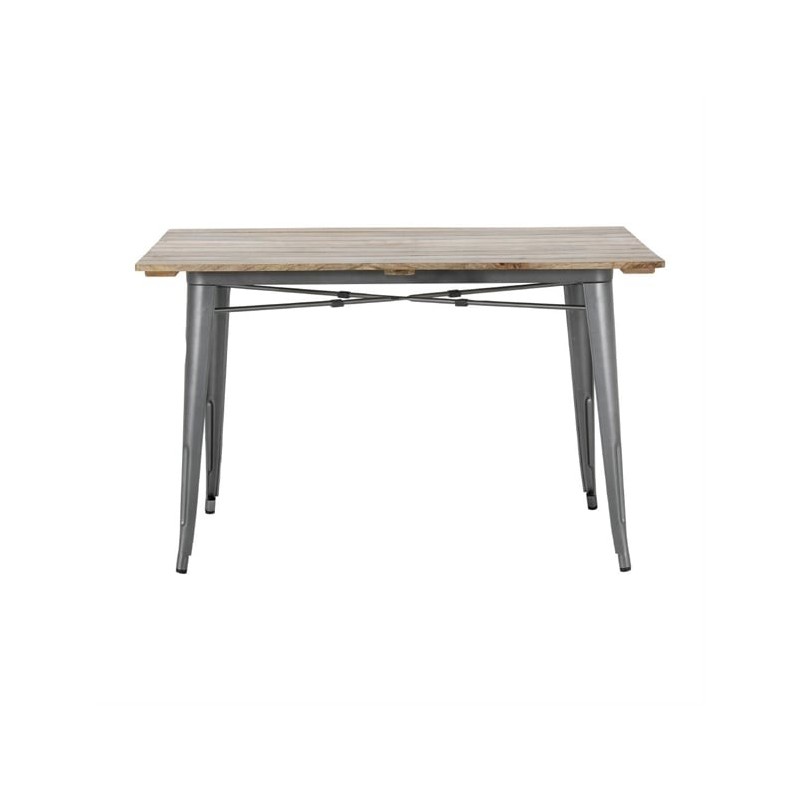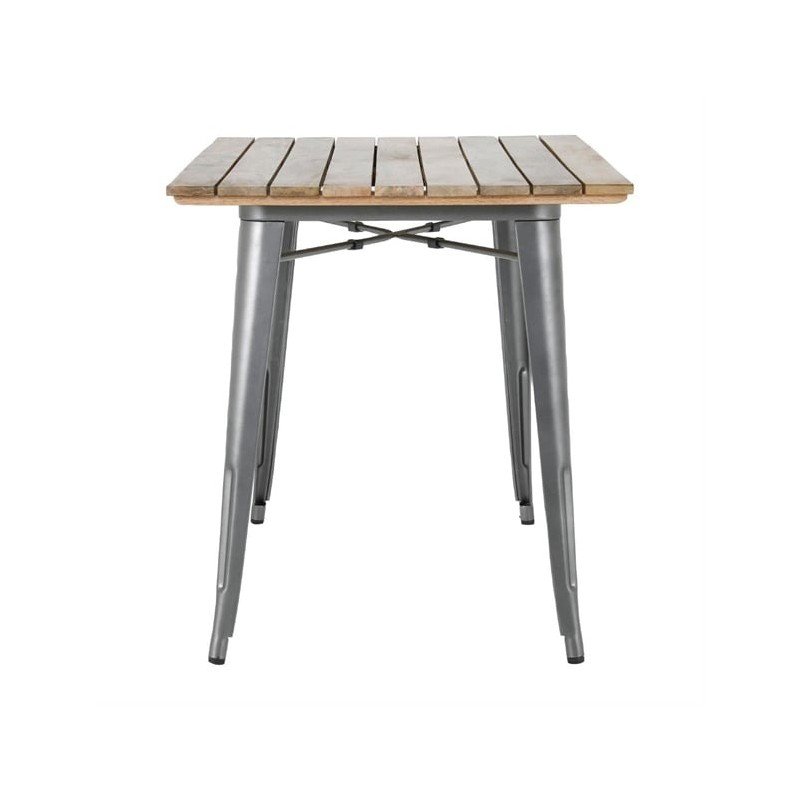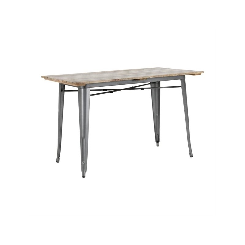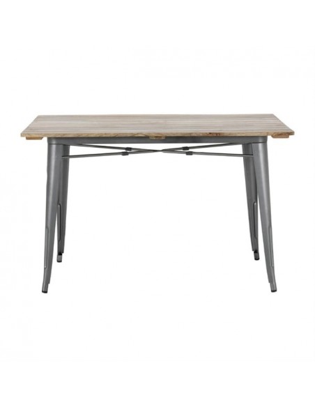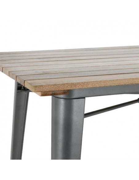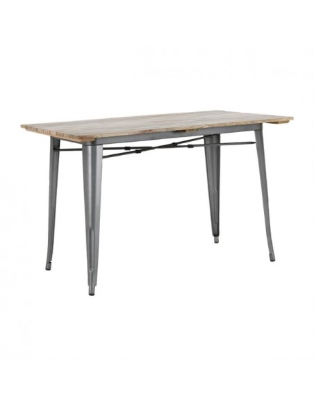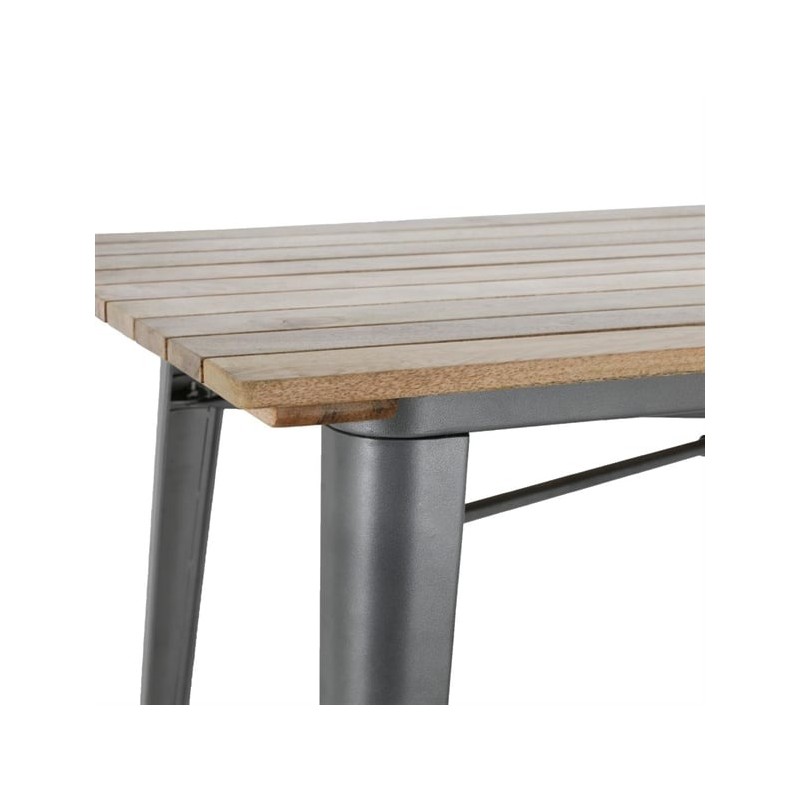 The gunmetal-grey powder-coated steel frame is scratch- and corrosion-resistant, making it durable enough for busy service. Its slatted mango wood top introduces natural warmth, creating a beautiful contrast with the urban-industrial frame. Measuring 1200 x 700 mm, it comfortably seats up to four guests – perfect for compact dining areas or casual lounge settings.