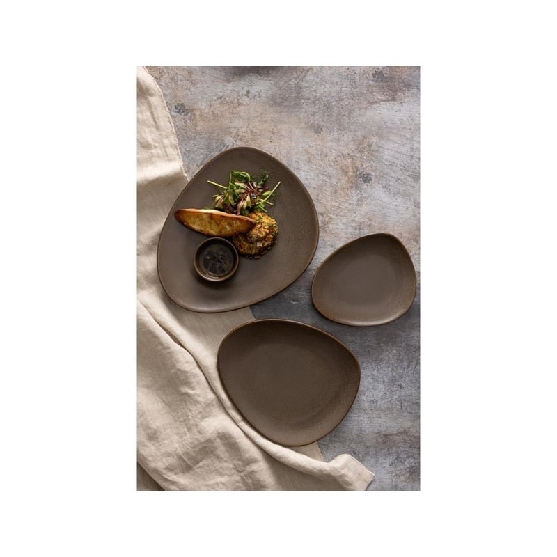 Discover the earthy charm and practical elegance of the Olympia Ember collection. Finished with a distinctive reactive glaze, each triangle plate is truly one of a kind, bringing a unique, handcrafted feel to your dining presentation. Perfectly suited to rustic or industrial settings, Ember dinnerware is ideal for all-day dining, dinner service, and gastropubs.
