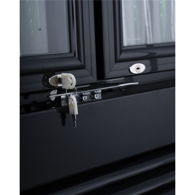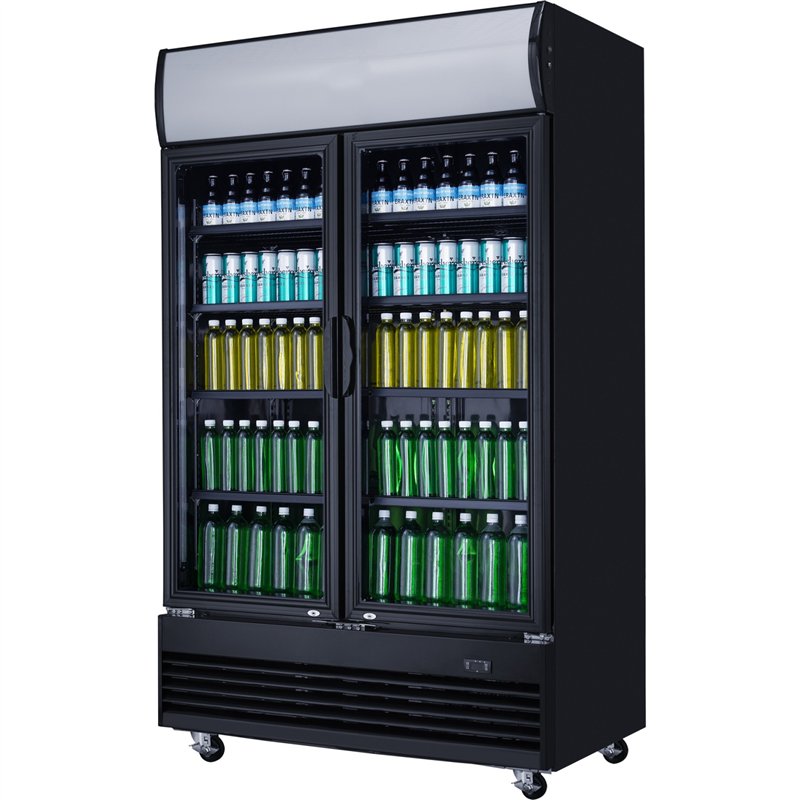 Commercial Bottle Cooler Upright 980 Litres Ventilated Cooling Twin Hinged Doors Canopy Light 1200x730x2036 Black | Stalwart DA-