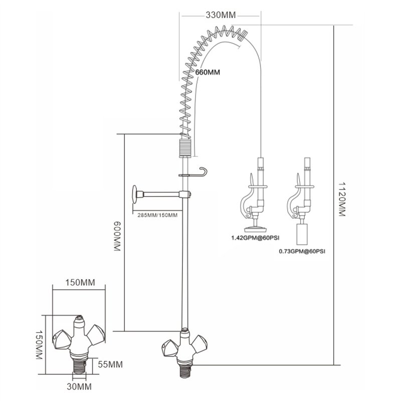 Standard pre-rinser for heavy-duty commercial use