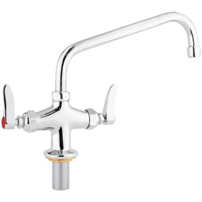 Designed for professional kitchens and foodservice environments, this commercial deck mount mixing faucet combines durability, reliability, and ease of use. Crafted from polished chrome-plated brass and equipped with smooth compression cartridges, it delivers consistent water flow and long-lasting performance. The 10" (254 mm) swing nozzle provides flexible water direction, while dual lever handles allow precise hot and cold water control. Its single-hole mount ensures a clean, space-saving installation, making it ideal for restaurants, bars, and other high-demand commercial settings.