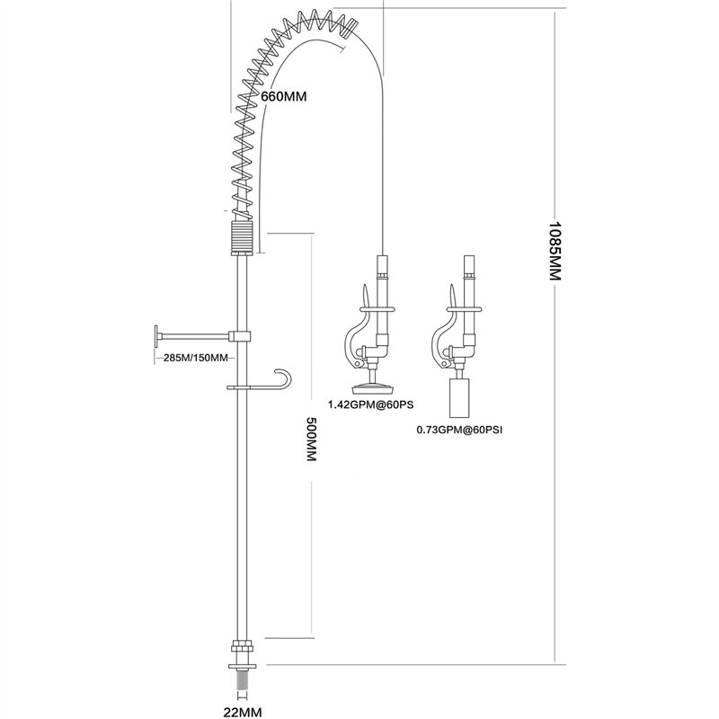 Engineered for professional kitchens, this premium single hole desk mount mixing faucet delivers durability, efficiency, and ease of use. Its polished chrome-plated brass body ensures long-lasting performance, while the 20" riser and 37" flexible stainless steel hose with heat-resistant handle provide maximum reach and safety for heavy-duty cleaning tasks. The 1.42 GPM spray valve delivers powerful rinsing, and the ceramic cartridges guarantee smooth, drip-free operation for reliable daily use.