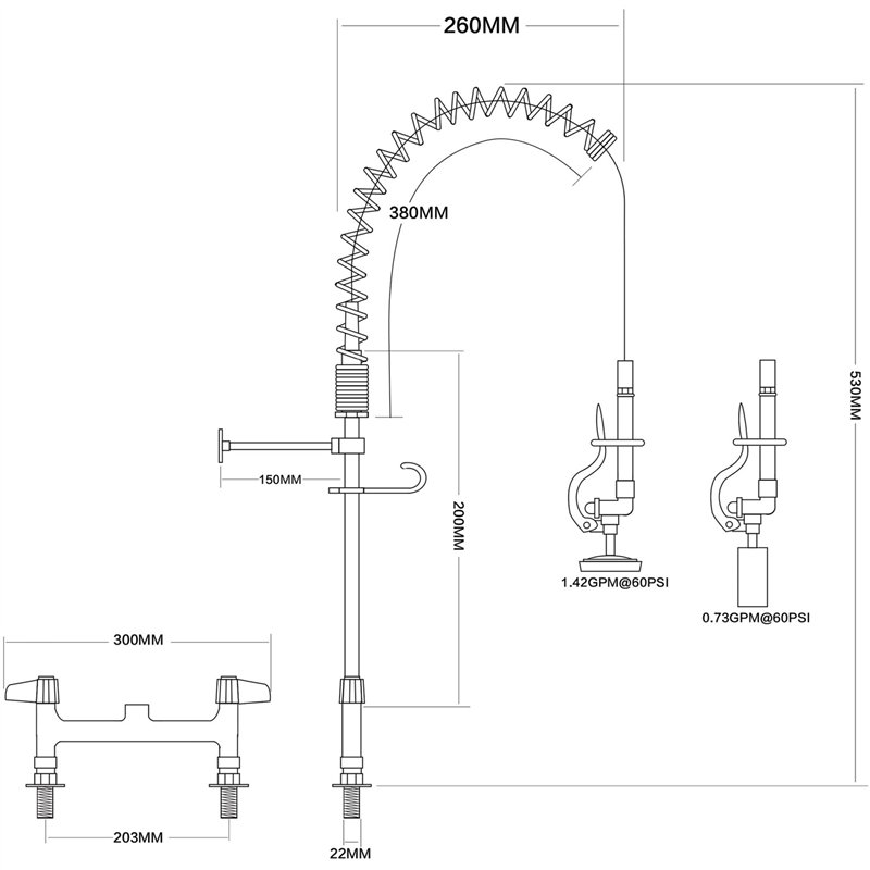 Deck-Mounted Design: 8" (203mm) center hole spacing with 22mm fittings
