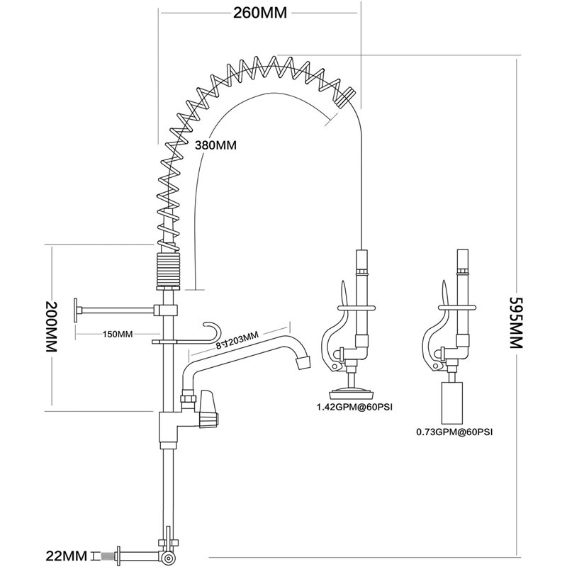 Equipped with a 1.42 GPM spray valve and ceramic cartridges, this faucet guarantees reliable water flow, precise temperature control, and long-term performance. The included 8" swing nozzle adds functionality, allowing effortless switching between rinsing and standard washing tasks. Perfect for restaurants, bars, and food prep stations, this faucet delivers efficiency, convenience, and commercial-grade durability.