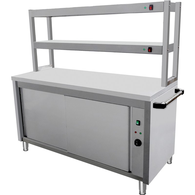 2 heated gantry shelves with 6 × 300W heating bulbs for consistent warming
