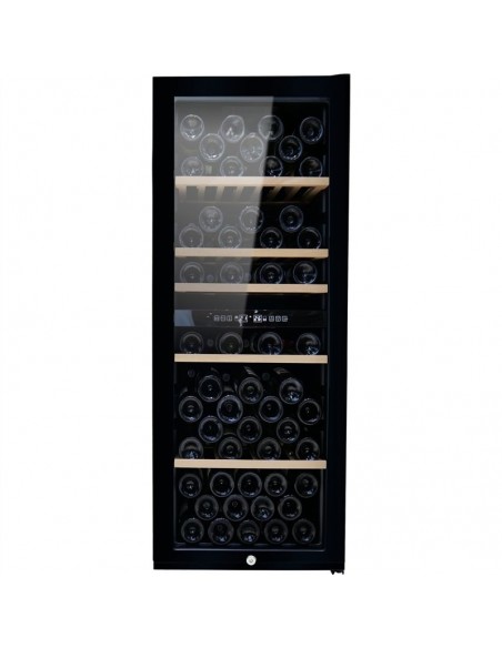 This dual zone wine cooler delivers optimal performance, stylish design, and dependable functionality, making it ideal for both professional and home wine storage.
