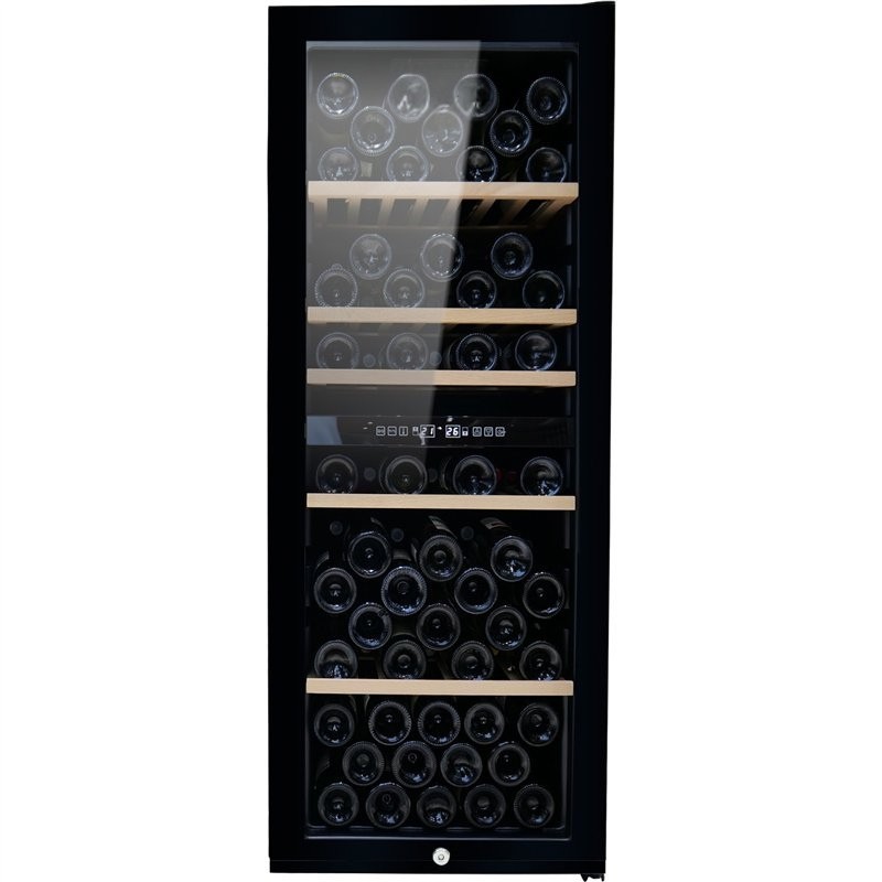 Store your wine collection in perfect conditions with this premium dual zone wine cooler. Designed to hold up to 98 bottles, it features independent upper and lower temperature zones (Upper: 5–12°C, Lower: 12–20°C), ensuring that both red and white wines are preserved at their ideal serving temperatures.