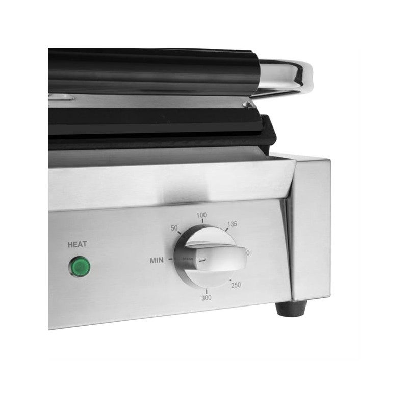 With its adjustable swivel head and variable heat control, you have complete control over the cooking process. The counter-balanced head shapes neatly onto the food, maximising the cooking area to reduce cooking and queue times. And thanks to the removable grease collection tray, it's easy to keep clean between cooks.