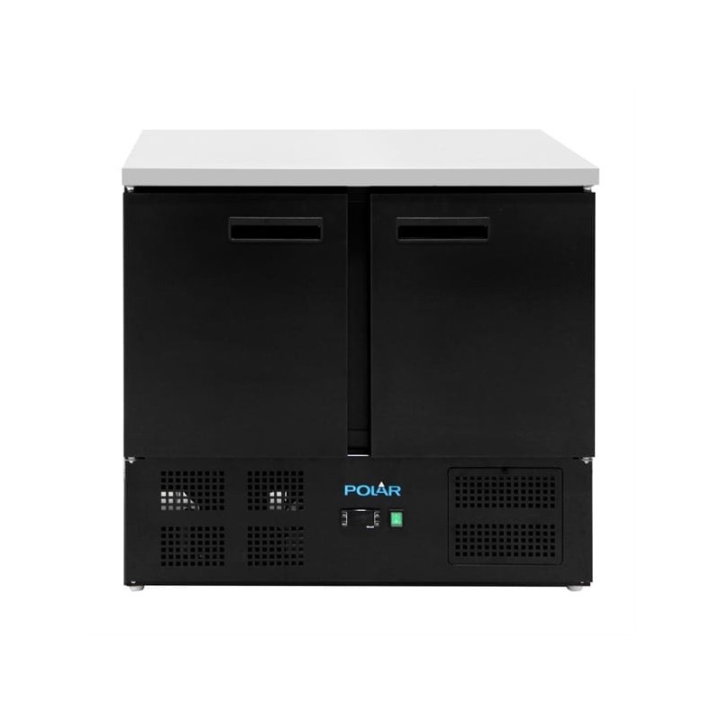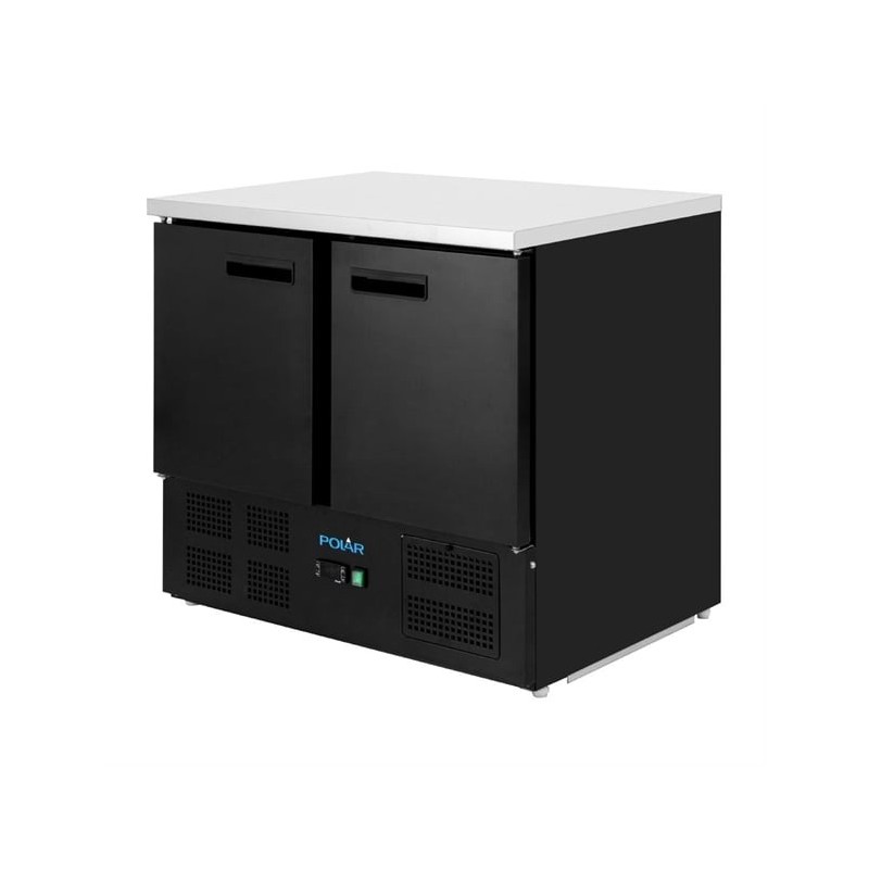 The Polar G-Series Double Door Counter Fridge is the perfect combination of style, durability, and performance for busy food service environments. With a sleek black painted steel exterior and a robust stainless steel worktop, it not only enhances the professional look of your kitchen or front-of-house area but also provides a reliable surface for food preparation or packaging.