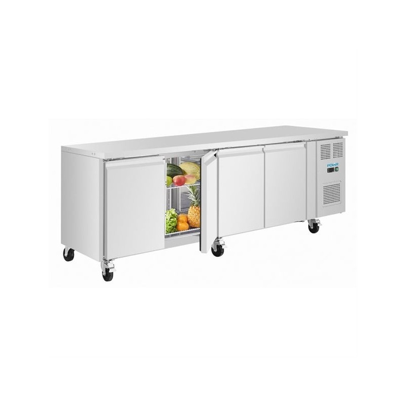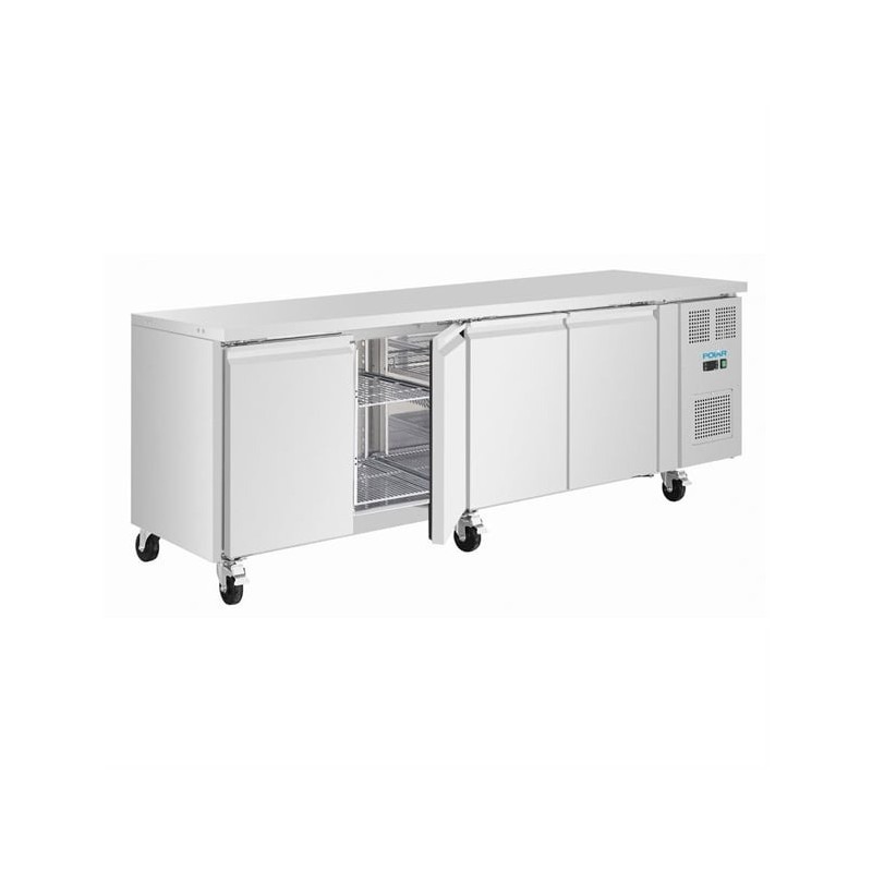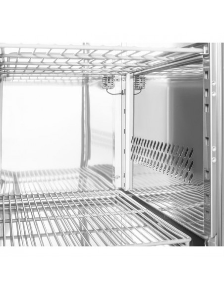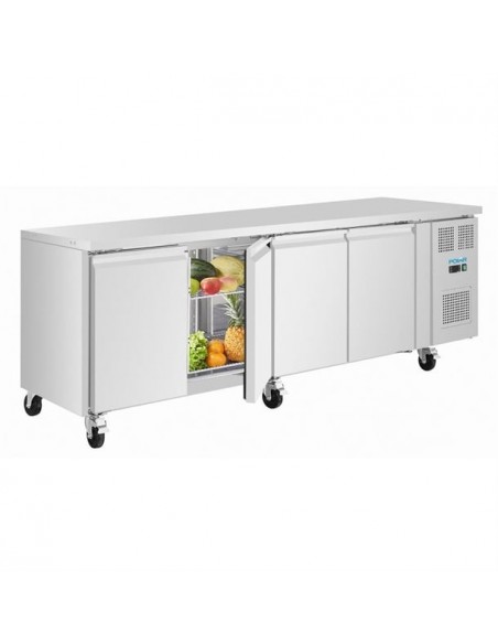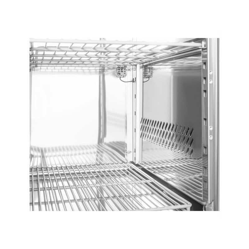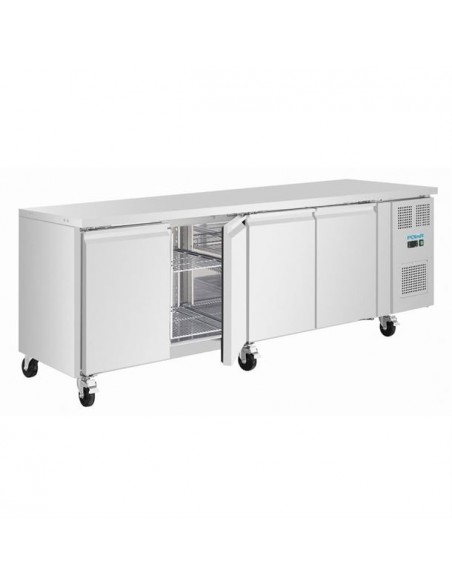 Equipped with a ventilated cooling system, the fridge maintains consistent internal temperatures, supporting food safety and preserving ingredient quality. The user-friendly digital control panel with LED display allows precise temperature management, while built-in castors enable easy repositioning and effortless cleaning around the unit.