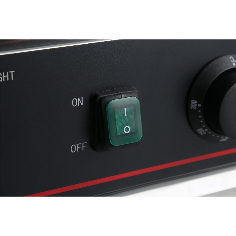 The unit comes with a metal T-spreader for precise crepe shaping, while the warming and power indicator lights make operation simple. For added safety and stability, it features non-slip feet, making it a reliable choice for cafés, restaurants, and catering services.