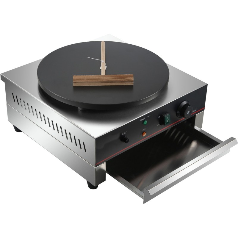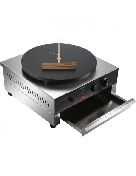 Create delicious, perfectly cooked crepes with this high-quality professional griddle. Built from heavy-duty stainless steel with a non-stick cast iron plate, it ensures durability, easy cleaning, and excellent cooking performance.