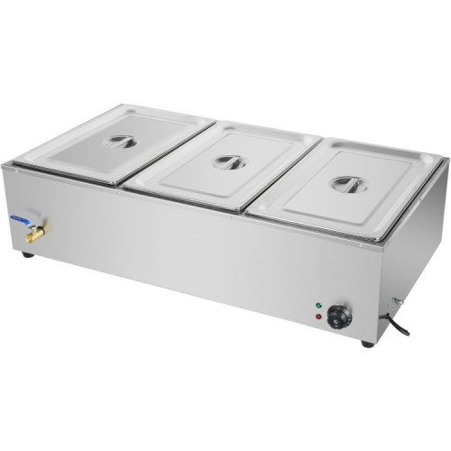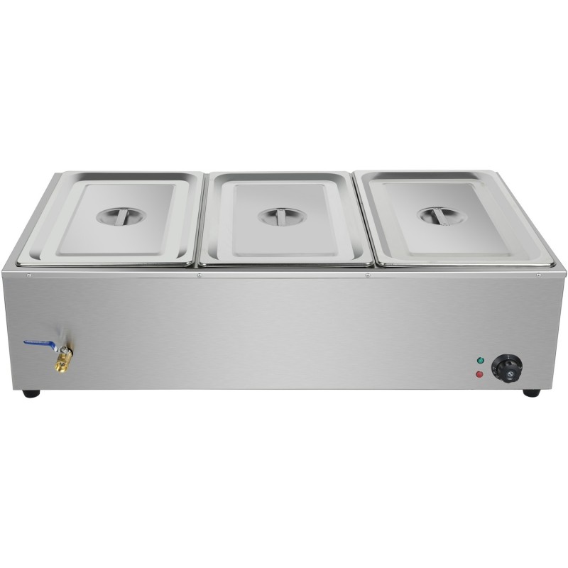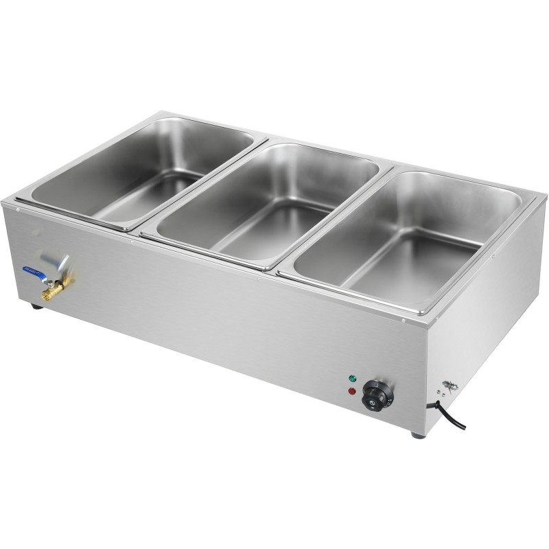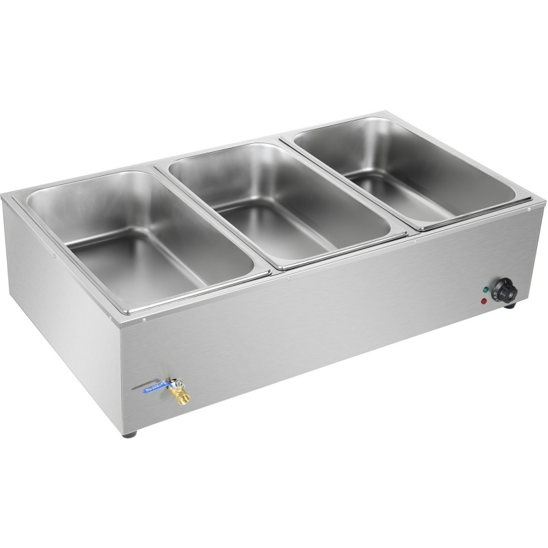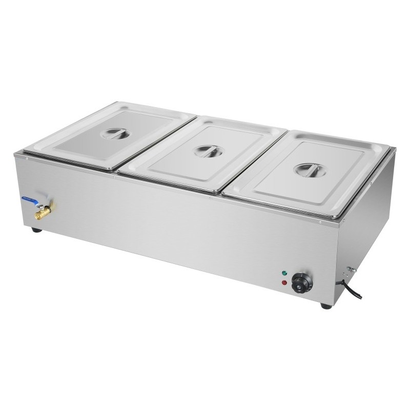 Commercial XL Bain Marie with Drain Tap 3xGN1/1 Including 3 containers with lid | Stalwart DA-HB3XL