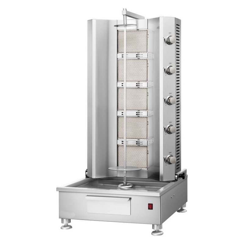 The Stalwart KTQ1250 Gas Shawarma Machine is a high-performance grilling solution designed for professional kitchens, restaurants, takeaways, and catering businesses. Built from durable stainless steel, it ensures long-lasting reliability, hygiene, and easy cleaning. Equipped with five powerful burners and operating on natural gas, it delivers efficient cooking with adjustable heat control, ensuring consistent results for shawarma, gyros, and kebabs.