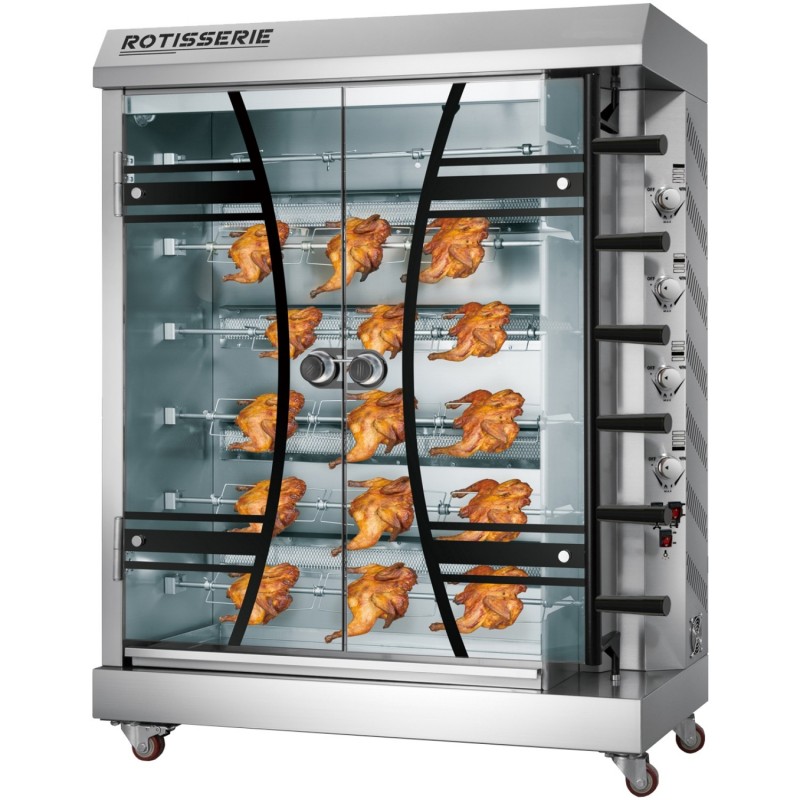 The KTQ6B Gas Rotisserie is a high-capacity roasting solution designed for professional kitchens that require efficiency, durability, and consistent cooking results. Equipped with 6 stainless steel rods and 4 high-efficiency gas burners, it delivers even and powerful roasting for chicken, meat, and other rotisserie dishes. Constructed from heavy-duty stainless steel and fitted with tempered glass doors, it combines excellent heat retention with clear visibility, making it ideal for restaurants, rotisserie shops, and catering businesses.