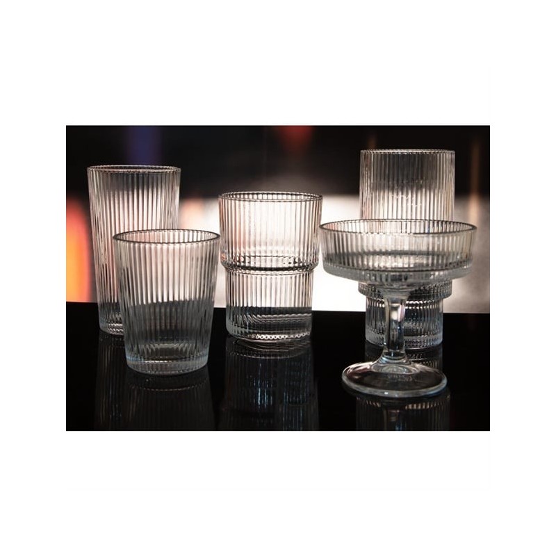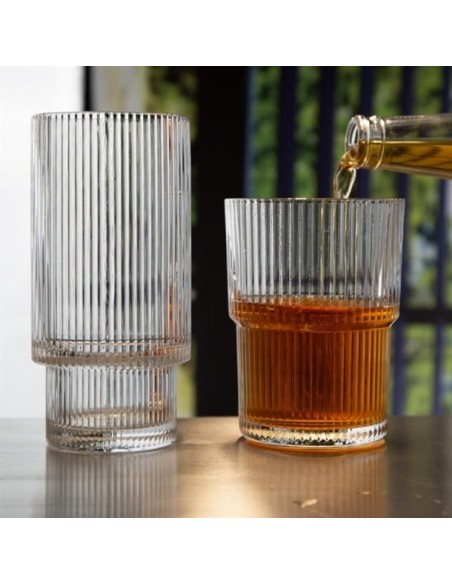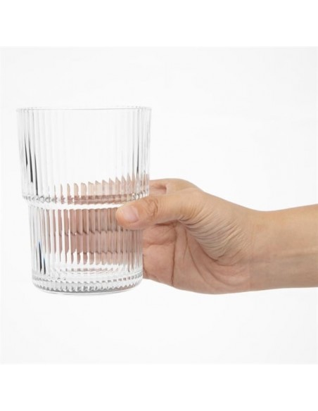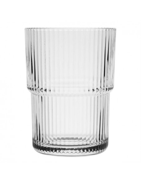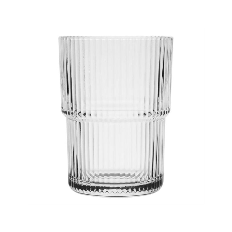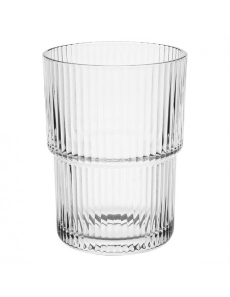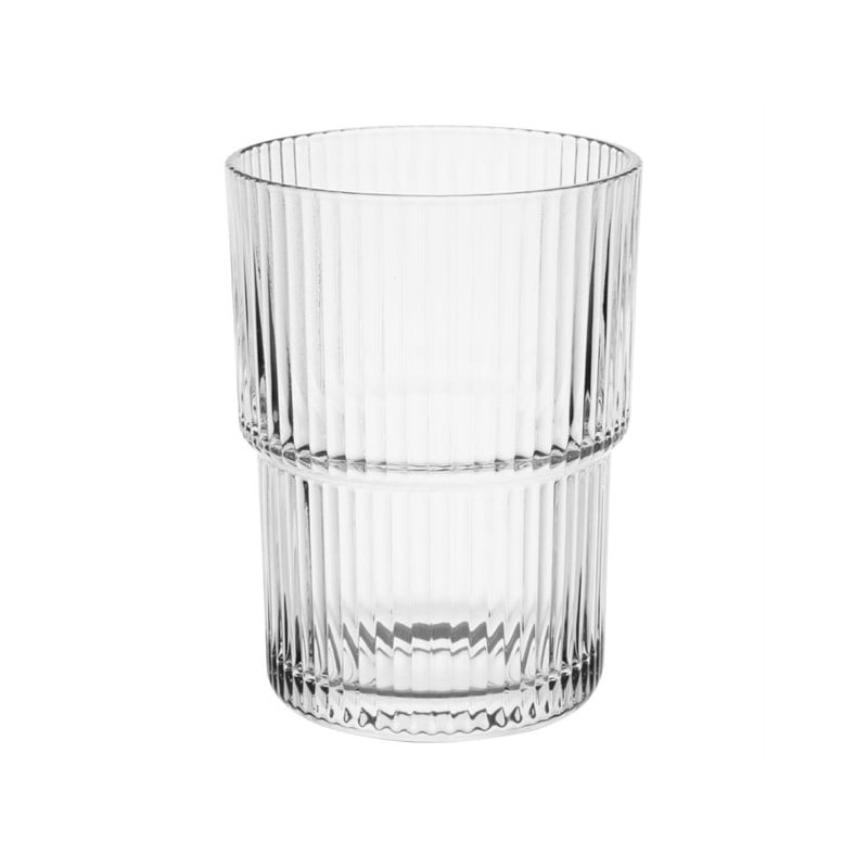 Serve drinks with elegance and efficiency with the Olympia Mae 440ml stacking tumblers. Featuring a clean vertical optic and exceptional clarity, these tumblers showcase beverages—from soft drinks to cocktails—in the best possible light.