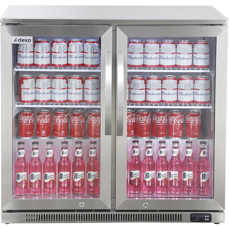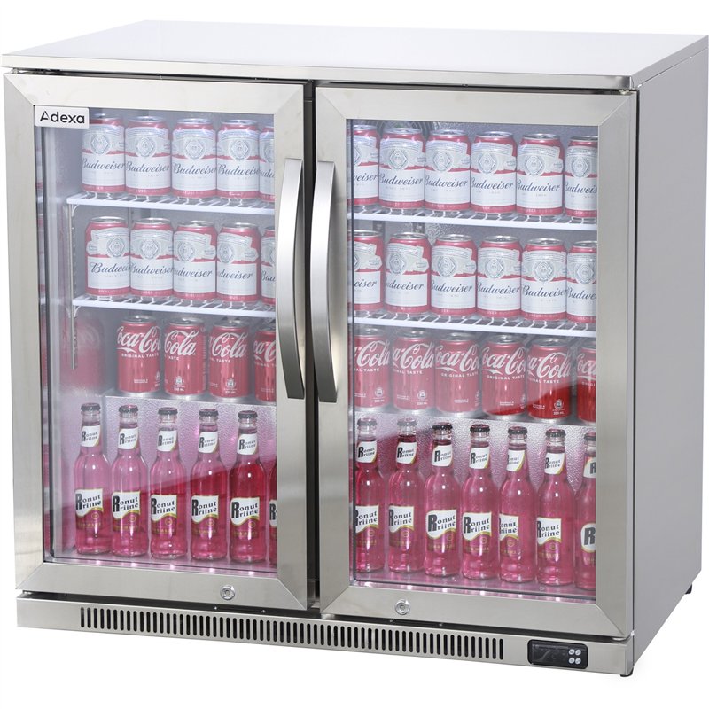 Commercial Back Bar Cooler 191 Litres 2 Hinged Glass Doors Stainless Steel 1000x650x960mm | Stalwart DA-BBC2HS