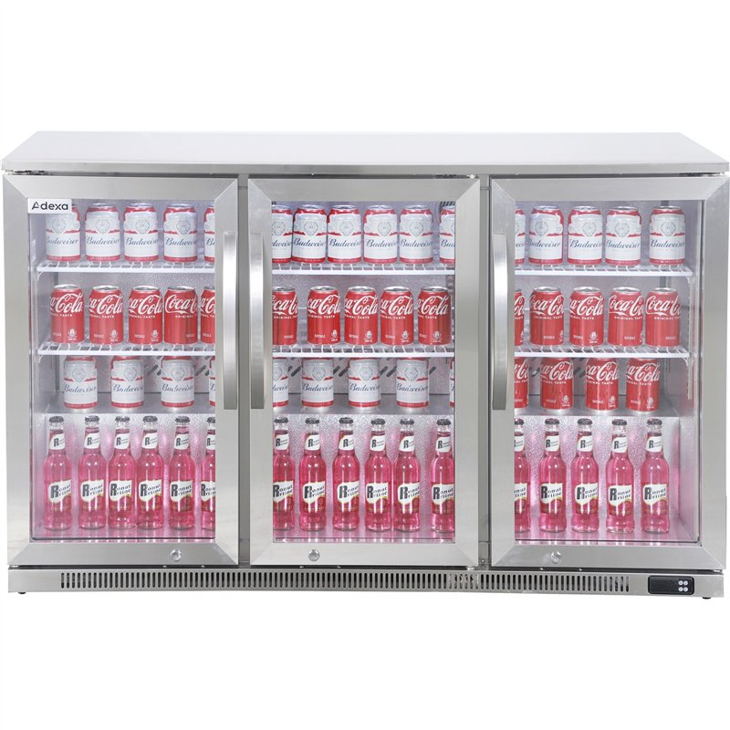 Commercial Back Bar Cooler 295 Litres 3 Hinged Glass Doors Stainless Steel 1440x650x960mm | Stalwart DA-BBC3HS