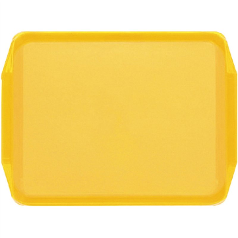 The vibrant yellow finish provides a clean and professional appearance, enhancing the presentation of any meal or beverage. Practical and user-friendly, the tray is easy to clean, stackable for space-saving storage, and ensures maximum efficiency in high-traffic food service settings. Its durable ABS construction guarantees long-lasting performance, making it a reliable choice for both commercial and casual dining operations.