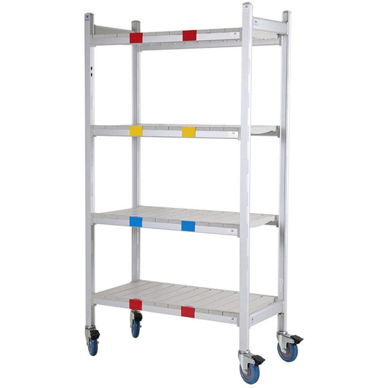 Designed with an open grid shelf layout, it promotes ventilation and easy cleaning, making it ideal for food-safe storage. Heavy-duty castors provide smooth mobility, allowing effortless repositioning in busy kitchens, catering facilities, and storage areas. The sleek grey finish adds a professional touch, while the 4-tier configuration maximizes storage efficiency.